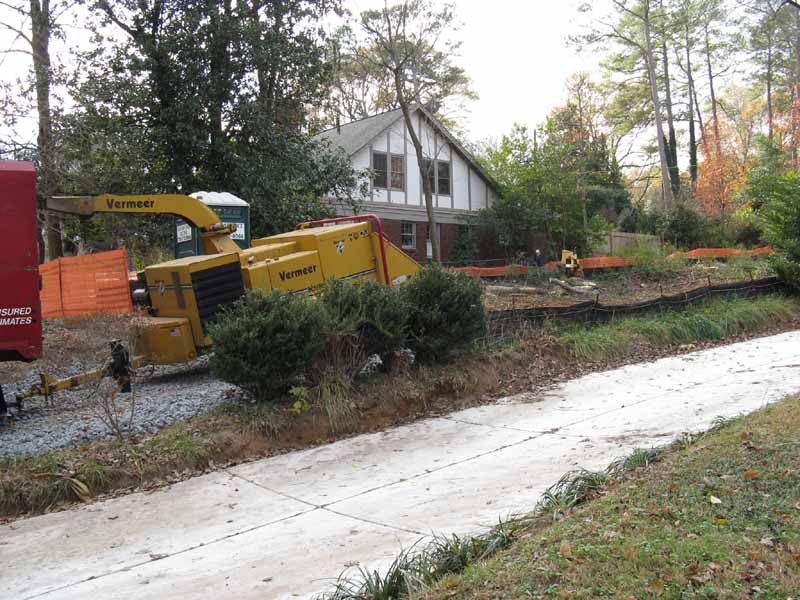 The driveway area has been temporarily filled with crushed stone to accommodate heavy trucks.